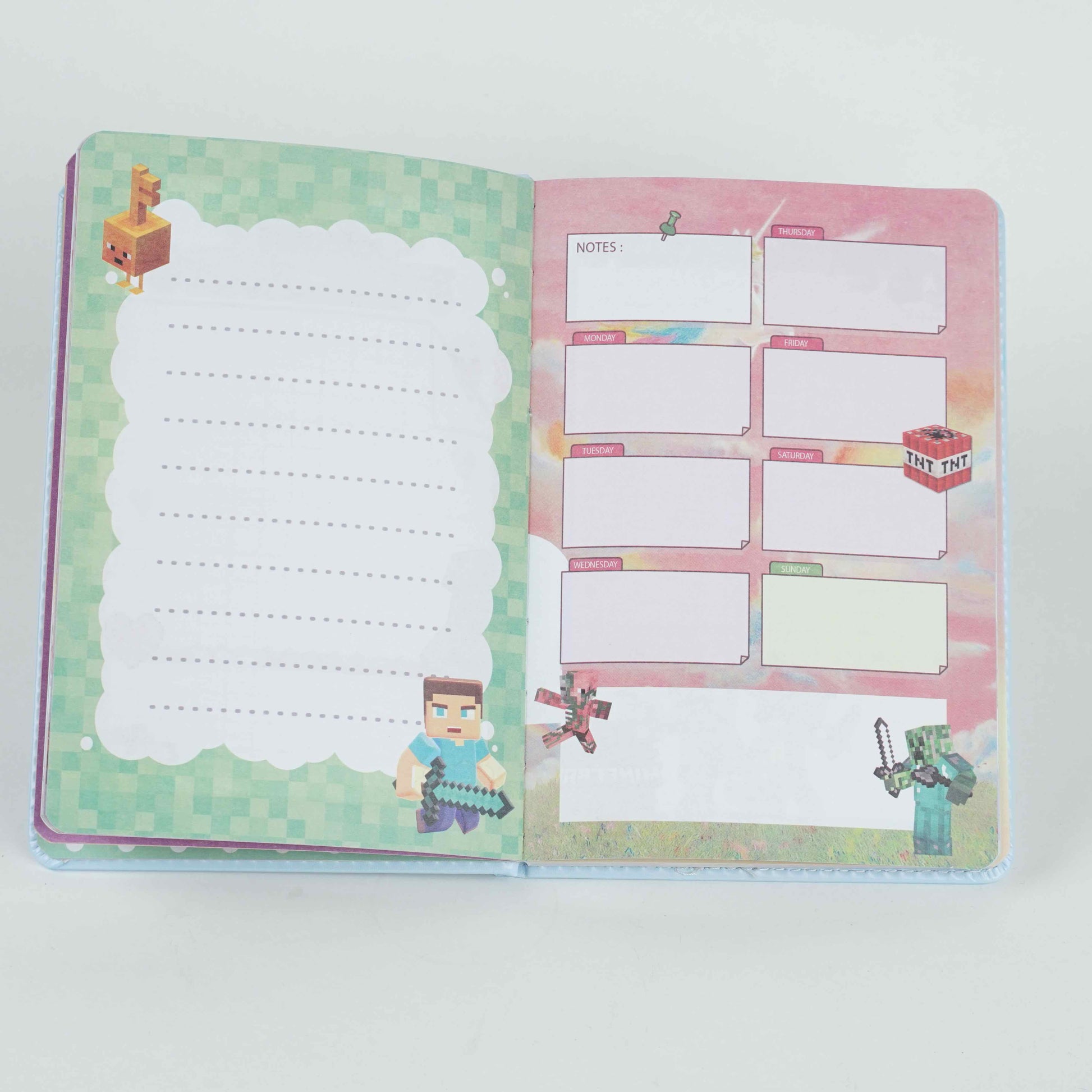 Plonge dans l’univers du jeu préféré des enfants avec le notebook Minecraft illustré. Son design inspiré des blocs et personnages iconiques rend l’écriture plus amusante et motive les enfants à prendre des notes, dessiner ou faire leurs devoirs.